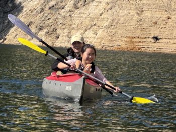 漕ぎ出してすぐ、美しい景色に感激する娘さんは、自分の力で進む楽しさに笑顔がはじけっぱなし。