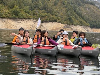 静かな湖面に響く山彦にみんなで感動し、自然の中でのちょっとした冒険気分を味わっていただきました。