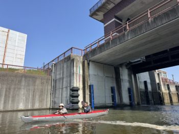 今回の舞台は、東京運河カヌーツアーならではの水門をくぐるコース。